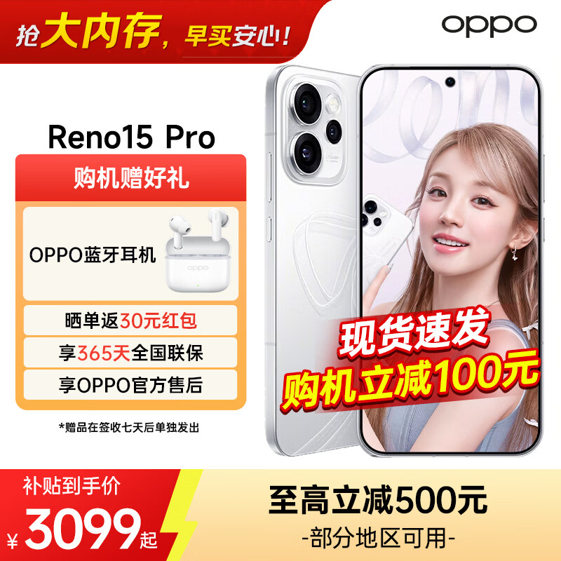 OPPO【国家补贴】 Reno15 Pro手机 2亿像素超清影像 超出圈实况神机 新品5G智能AI拍照 星光蝴蝶结 12GB+256GB 官方标配