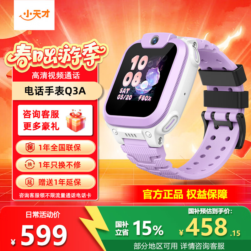 小天才儿童电话手表Q3/N5/Q2A升级大屏智能视频通话小学生3-6-12岁防水定位远程监控官方旗舰正品d5/u5 【新品】Q3A霞紫(新配色) 官方标配
