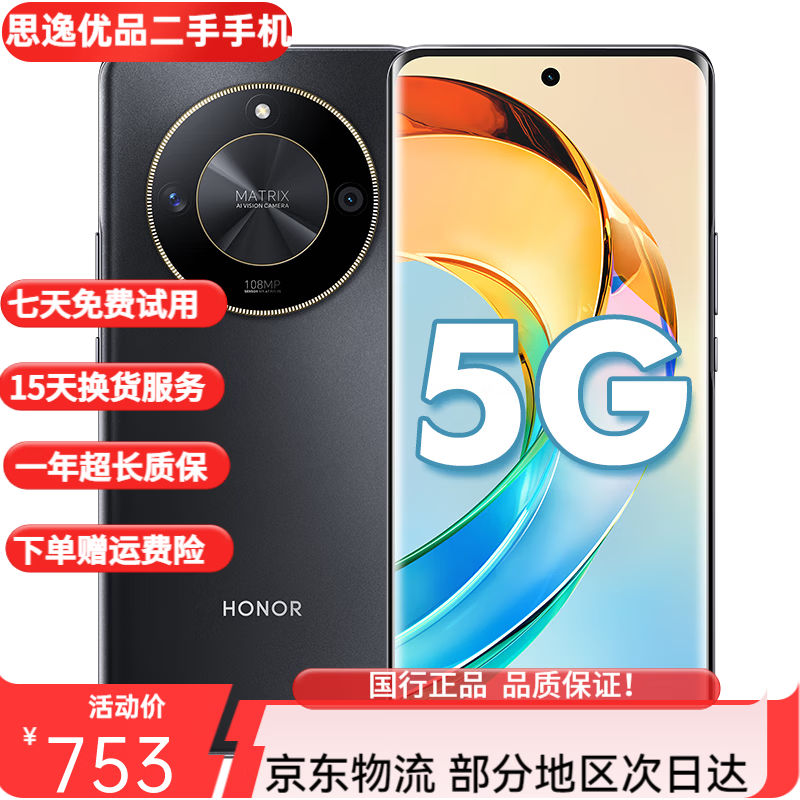 荣耀X50 5G二手手机 1亿像素 1.5K清护眼屏硬核曲屏5800毫安耐久大电池 典雅黑 16+512GB 99新