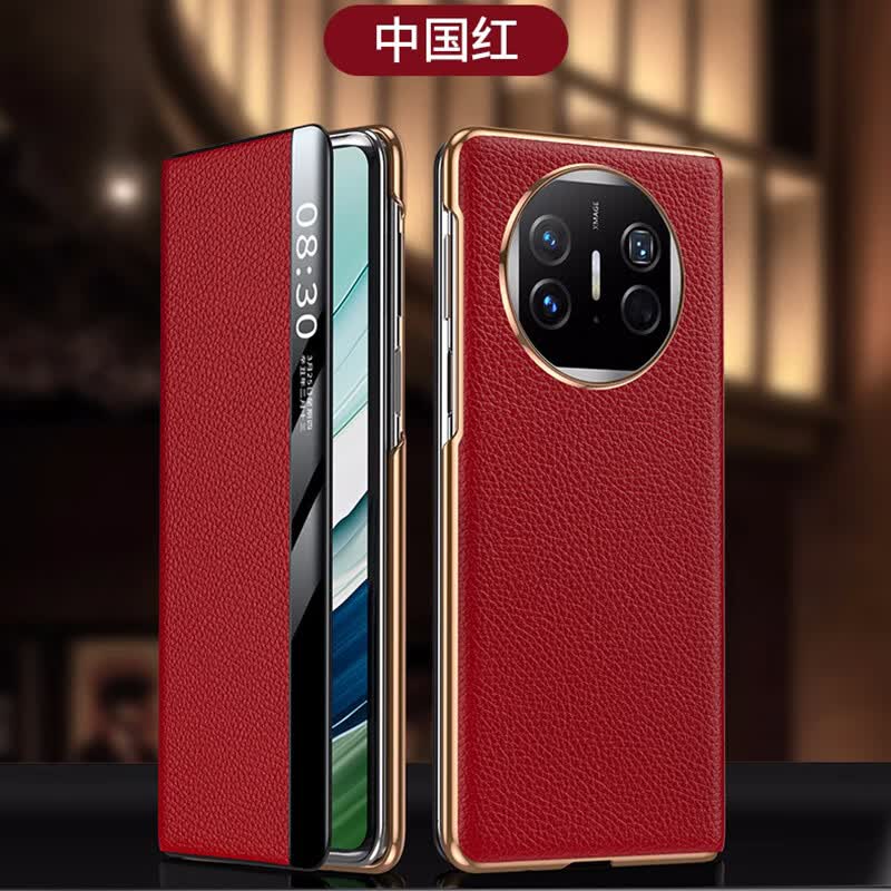 甲介华为matex5手机壳真皮磁吸翻盖x5典藏版智能视窗全包防摔保护套x3新款轻奢定制高端商务时尚皮套 【中国红】真皮智能磁吸翻盖 华为matex5/x5典藏版