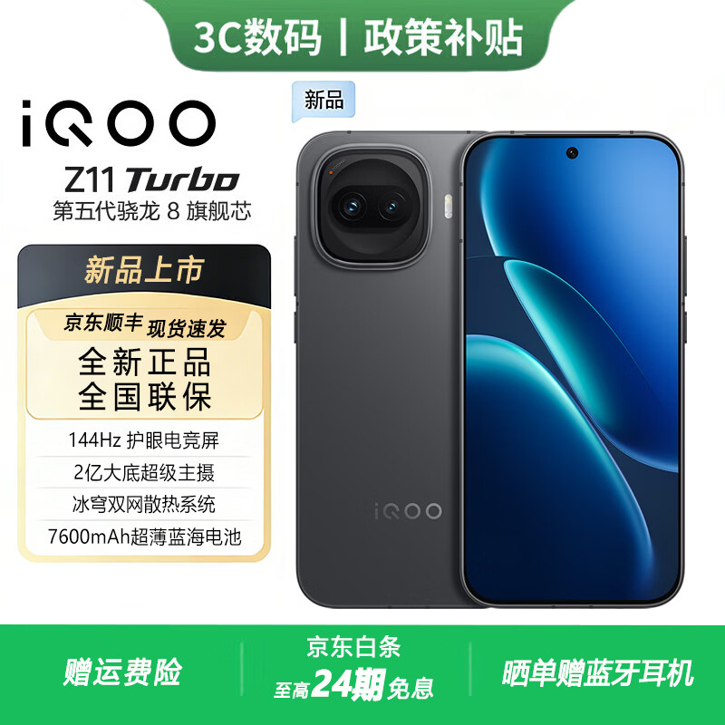 vivo iQOO Z11 Turbo 新品5G手机 学生游戏手机补贴24期免息 骁龙8Gen5 自研电竞芯片Q2 2亿大底主摄 极夜黑【全新未激活】 12GB+256GB【关注赠手机支架】 24期免息【全国联保】