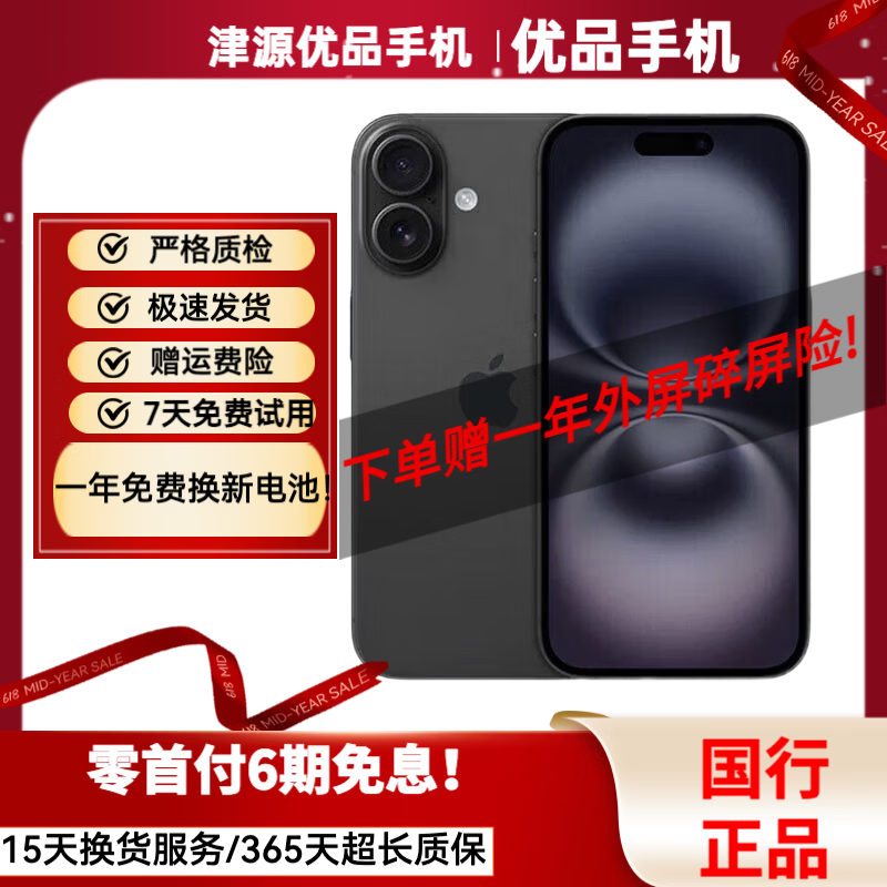 Apple iPhone 16 苹果16Pro 苹果16pro Max二手苹果手机 【三方屏幕】 苹果16 黑色【第三方屏幕】 9成新 【零首付六期免息+极速发货】128G