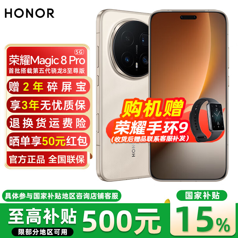 荣耀Magic8 Pro【国家补贴】新品5G手机 YOYO智能体 2亿超夜神长焦 第五代骁龙8至尊版 谢霆锋同款 旭日金砂 16GB+512GB 官方标配