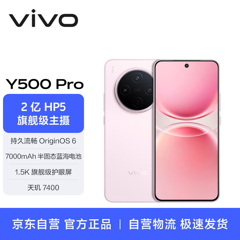 vivo Y500 Pro 12GB+512GB 柔粉 【通讯】2亿HP5旗舰级主摄 7000mAh蓝海电池 AI影像手机