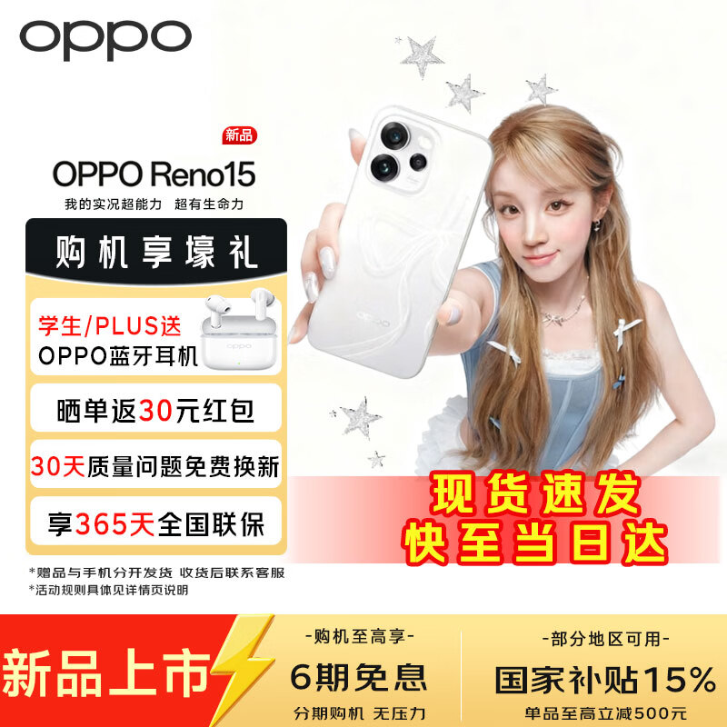 OPPO【国家补贴减15%】 OPPO Reno15 星光蝴蝶结 2亿像素超清影像 超出圈实况 5GAI拍照手机reno15 星光蝴蝶结 16GB+512GB