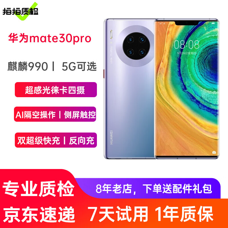 【100%电池】华为手机华为Mate30Pro 5G手机可选华为二手手机麒麟990二手机6.53英寸 星河银 【5G版】8+256G通电池寿命100% 95新