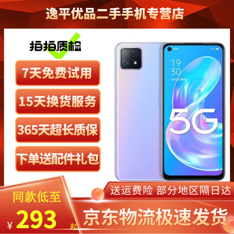 oppo A72 二手5G手机全面屏薄90Hz 大内存4000毫安电量全网通 二手手机 氧气紫 8G+128G(5G) 95新