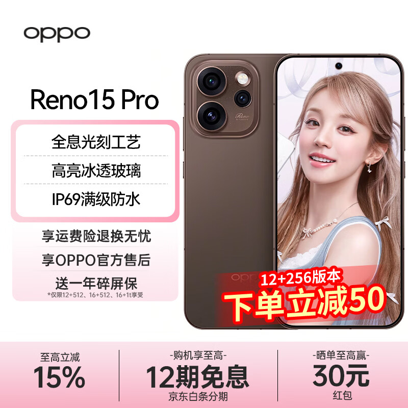 OPPOReno15 Pro 宋雨琦星光蝴蝶结 直播神器手机 2亿超清影像 opporeno15pro手机 可露丽棕 16GB+512GB