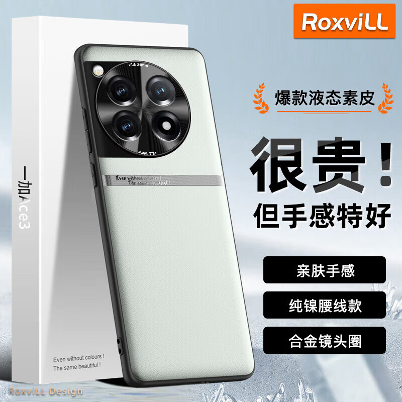 RoxviLL 适用一加Ace3手机壳真液态素皮PJE110全包防摔磨砂男女款简约商务轻奢保护后壳 【远山灰-纯镍腰线款】丨高端液态素皮 OnePlus一加Ace3