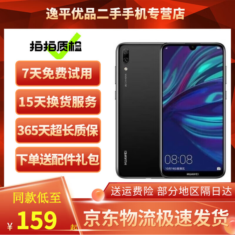 华为(HUAWEI)华为畅享9 二手手机 智能机 工作机全网通4G 双卡双待 后置双摄智能美颜 幻夜黑【颜色随机评价有礼】 4GB+64GB 9成新