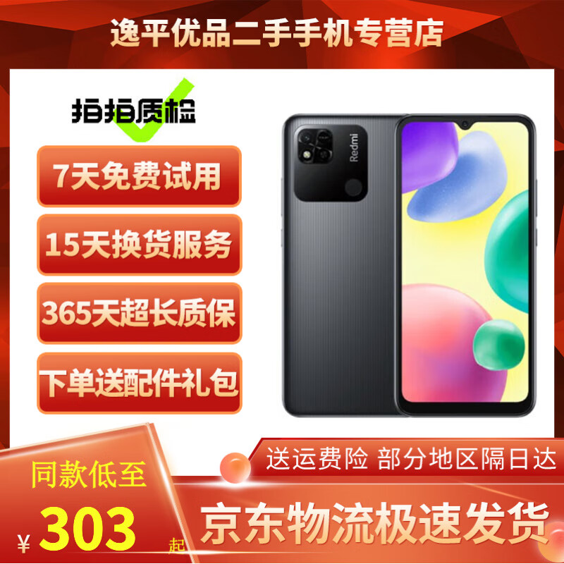 小米 红米 10A 二手手机 MI Redmi 安卓智能全面屏游戏拍照 暗影黑 4GB+64GB 95新