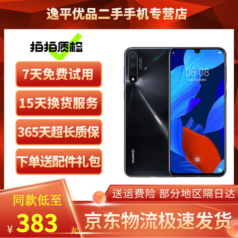 华为 HUAWEI nova5Pro麒麟980芯片4800万像素 二手手机 华为手机 亮黑色 8GB+256GB 95新