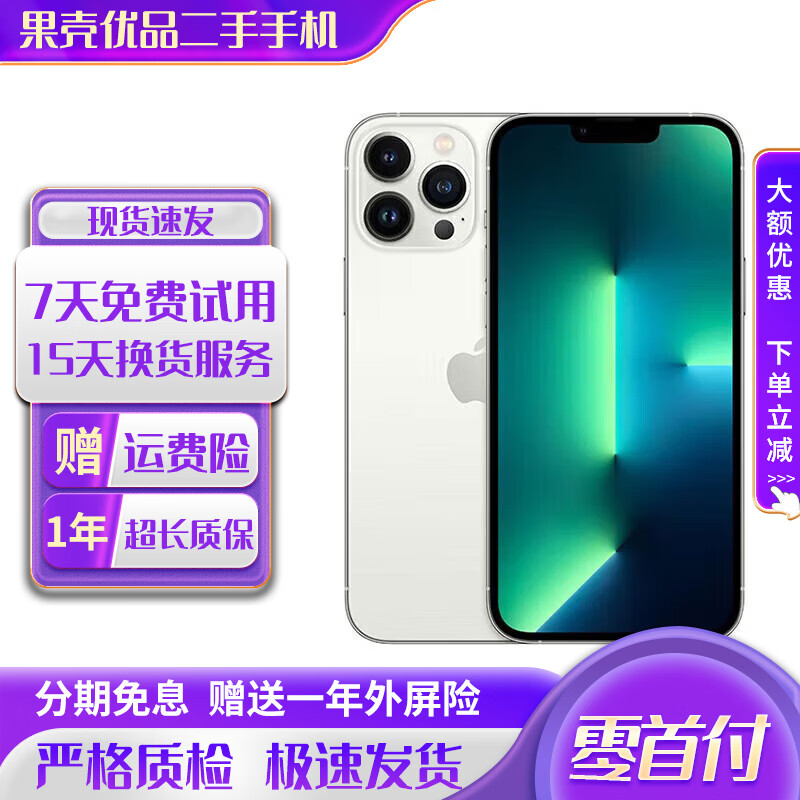 Apple 【已验机】iPhone苹果13Pro苹果13Promax二手手机二手苹果手机 苹果13 Promax 银色 256G【电池效率100%+零首付分期免息】95新
