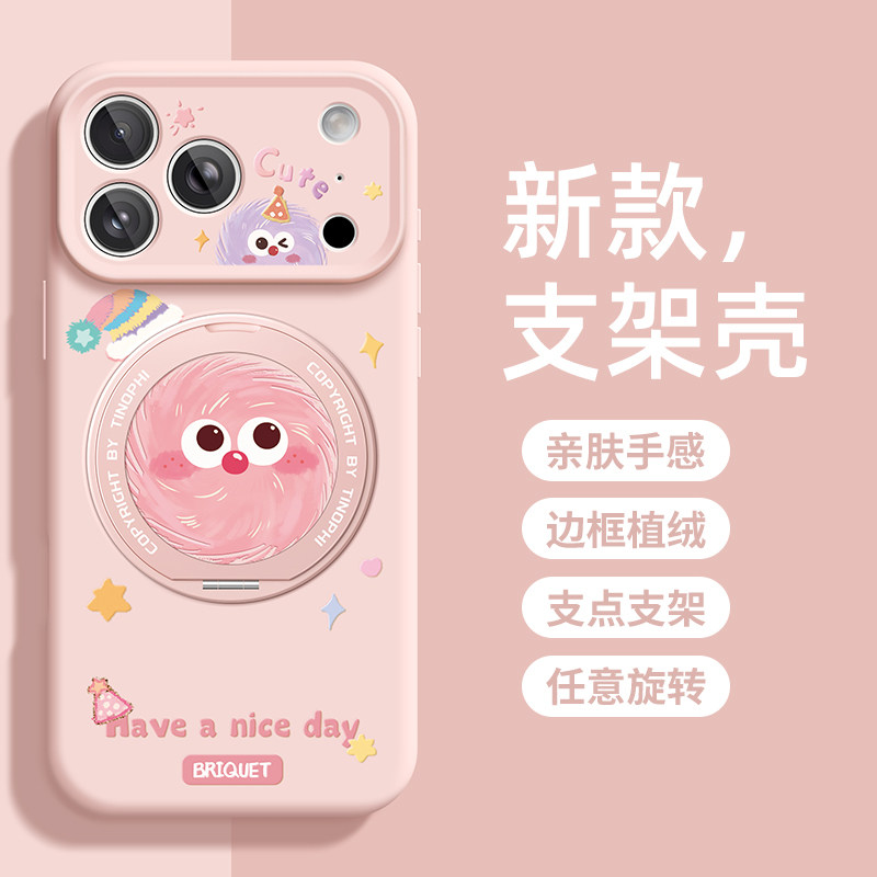 适用苹果17promax手机壳新款iphone16保护套液态硅胶ip15带支架防摔iphone14可爱煤球超薄por全包支点外壳女