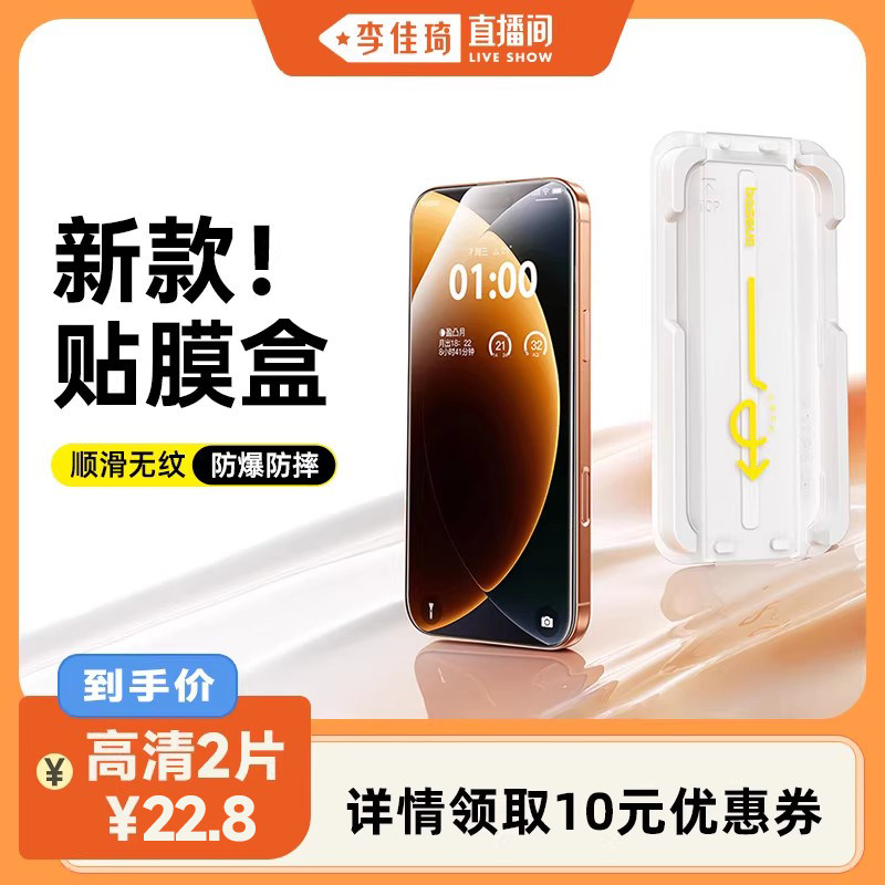 【李佳琦直播间】倍思适用苹果17Pro钢化膜iPhone16ProMax手机膜15屏幕保护ip14/13防摔12无尘仓11AR无黑边