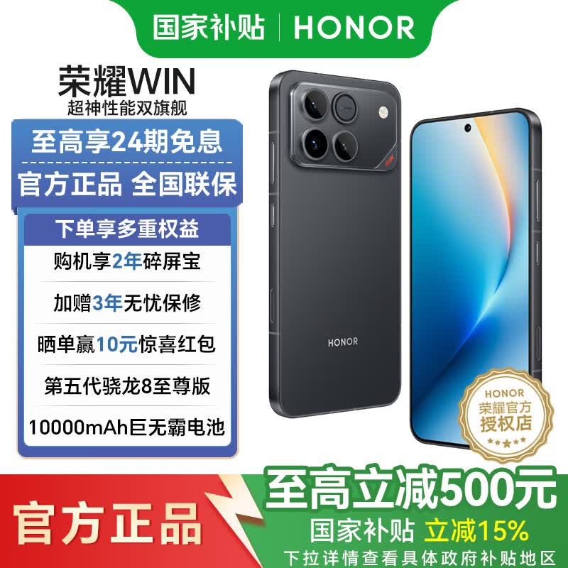 荣耀WIN 【张予曦空降直播间】 第五代骁龙8至尊版 荣耀东风涡轮散热 AI 游戏手机 快开黑 16GB+512GB【2年碎屏险+3年质保】 官方标配【6期免息】