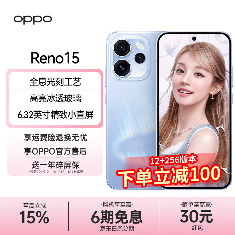 OPPOReno15 【现货速发】宋雨琦星光蝴蝶结 实况神机手机 2亿超清影像 直播神器 opporeno15 手机 极光蓝 12GB+512GB 官方标配【全国联保】