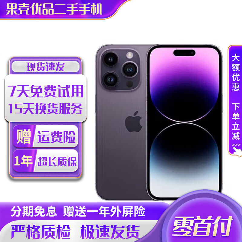 AppleiPhone苹果14Pro苹果14Promax二手手机二手苹果手机【三方屏幕】 苹果14Pro Max 暗夜紫色 256G【国行双卡+赠配件】极速发货 9成新