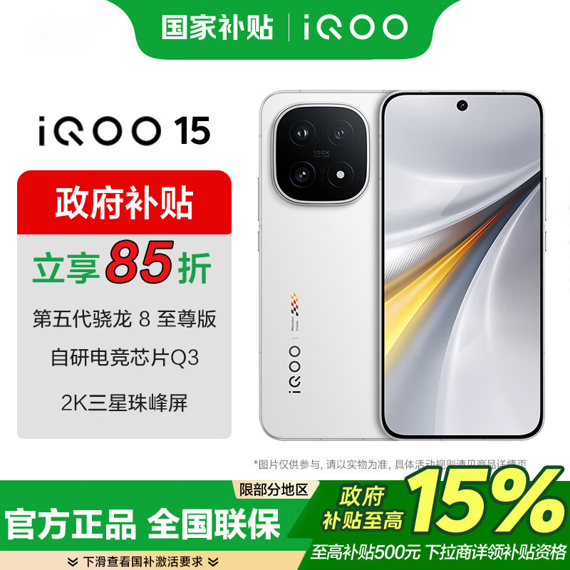 vivo iQOO 15 国家补贴 第五代骁龙8 至尊版 2K 三星珠峰屏 100w超快闪充 学生游戏电竞新品手机 传奇版 16GB+512GB 官方标配
