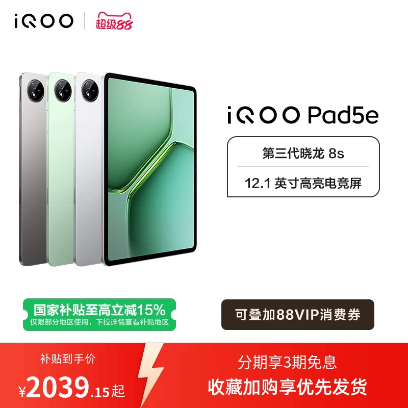 【直播间抢红包新品3期免息 】vivo iQOO Pad5e平板电脑第三代骁龙8s好物12.1英寸新品
