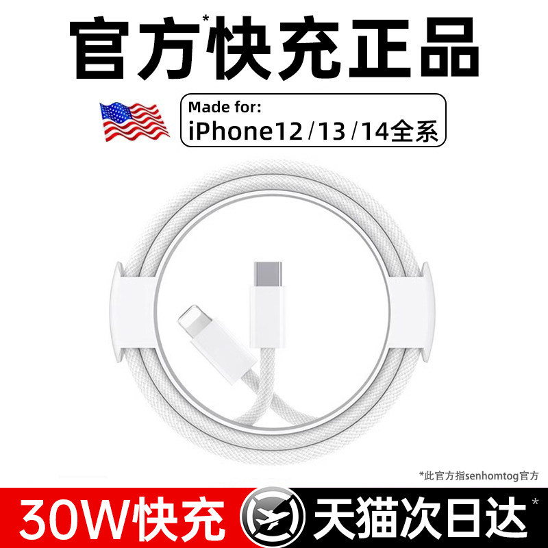 编织快充线PD30W适用苹果14充电线iphone13数据线快充12器11手机16车载usbc15promax正品lightning闪充Pad2米
