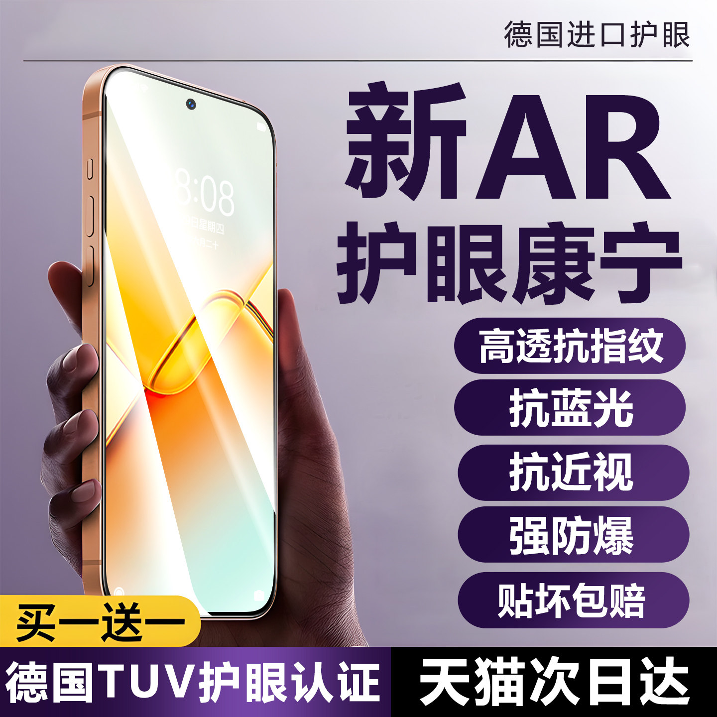 【超清柔光护眼】麒韦适用苹果17promax钢化膜16pro手机膜15plus护眼防蓝光iphone14AR抗反光13防摔12air防爆