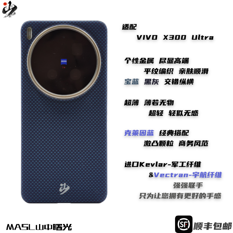 MASL山中曙光™ 适用于VIVOX300Ultra手机壳凯夫拉芳纶纤维轻薄手感磁吸爵士蓝vivoX300彩色编织纤维克莱因蓝