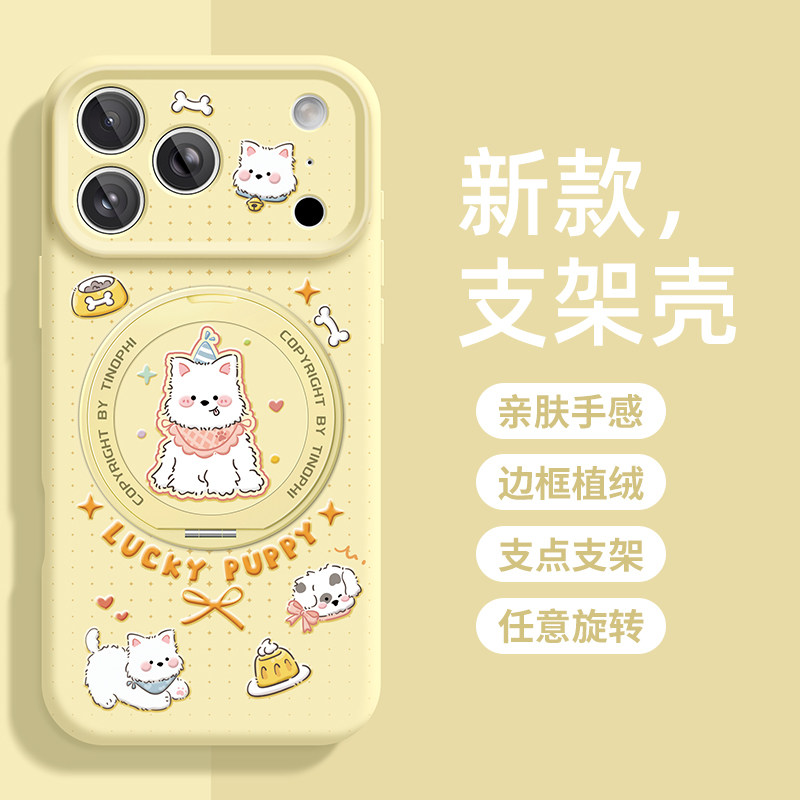 适用苹果17promax手机壳新款iphone16pro保护套液态硅胶iphone15带支架防摔ip14全包可爱西高地17por支点外壳