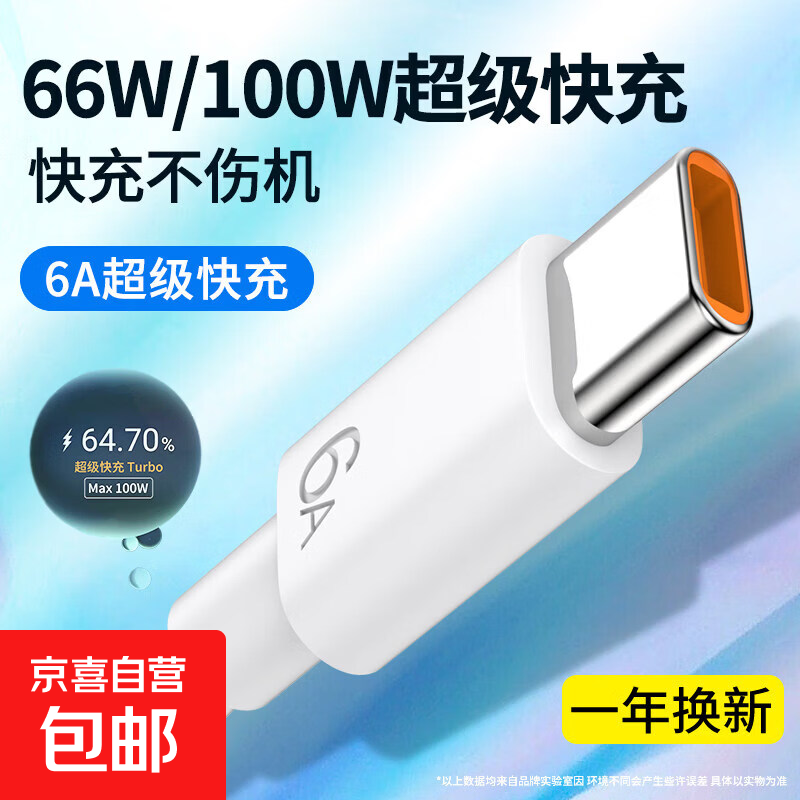 【66W快充】6A快充充电器Type-c数据线适用于华为mate40p30荣耀小米手机max闪充通用usb车载 6A快充66W【1条促销装】冰感提速999% 1米