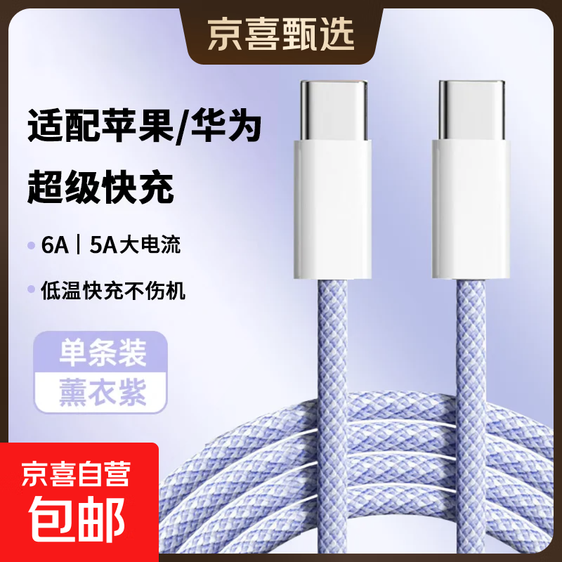 双Type-c数据线PD快充c to c适用苹果16/15充电线IPhone16/15ProMax/iPad/Macbook华为/荣耀手机 熏衣紫1米