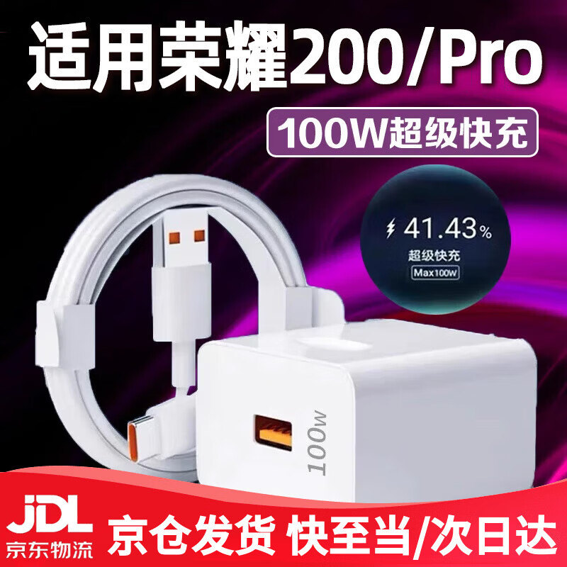 原装适用荣耀200充电器100W超级快充荣耀200pro充电头10A快充插头荣耀200充电插头手机充电器 【100W套装】快充头+1米线