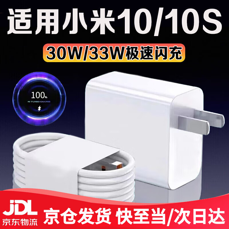 原装适用小米10充电器30W极速闪充10充电插头3A闪充线小米10充电插头小米10s手机充电线 【套装】33W闪充头+1米线