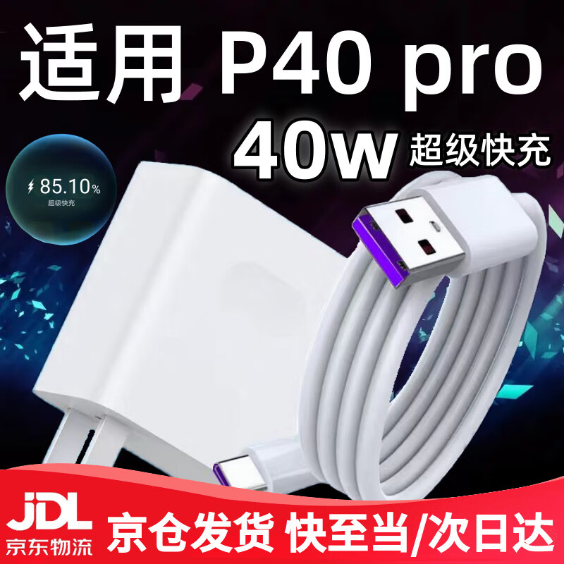 原装适用华为P40pro充电器40W瓦快充华为P40pro手机快充5A加长充电线华为P40充电插头 【套装】40W快充头+1米线