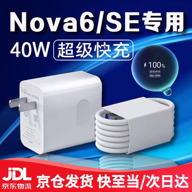 原装适用华为Nova6充电器40W快充Nova6pro5G手机nova6se充电头5A插头nova6套装 【套装】40W快充头+1米线