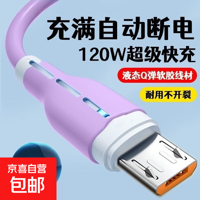 液态硅胶安卓数据线micro梯形口usb通用充电器线快充闪充适用华为vivo手机充电宝4A 1米带灯神秘紫安卓梯形口
