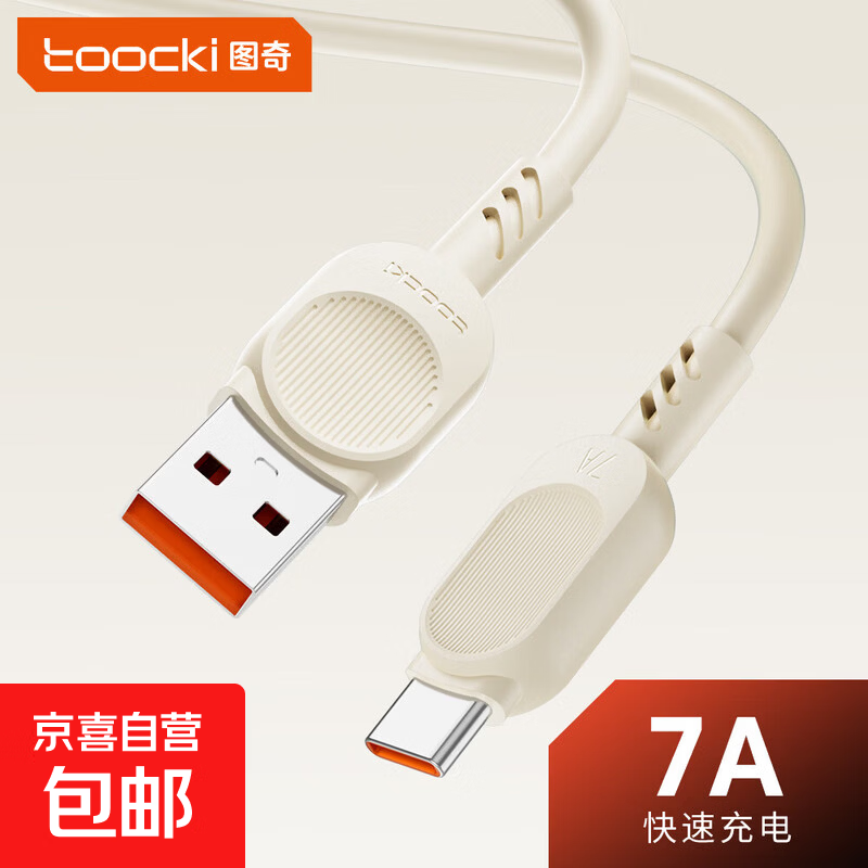 100W快充数据线7A适用苹果15-17系列A转C接口硅胶款适配华为小米安卓手机平板充电线 USB A-C【7A快充】米色1米