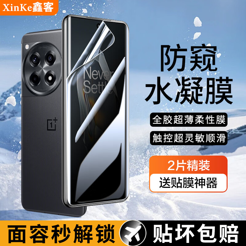 鑫客适用一加Ace3/pro防窥水凝膜1+Ace3v手机膜软膜修复曲面屏全覆盖非钢化高清全胶保护膜 一加 Ace3/pro【防窥水凝膜】2片装+神器