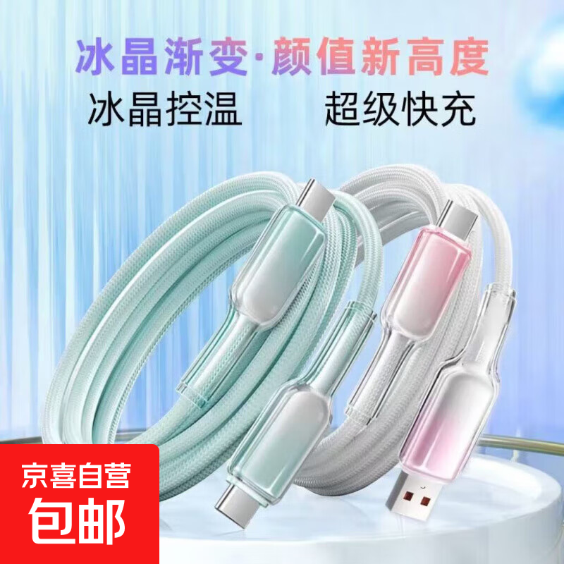 65W冰晶渐变快充数据线适用苹果15-16华为手机typec闪充6A编织线 冰晶渐变 混色(USB-TypeC)1米 1条