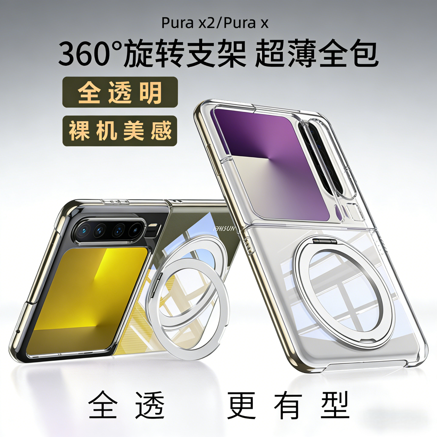 艾勒丝汀 华为pura x2手机壳华为pura fold保护套华为PuraX保护套典藏版小折叠屏防摔全包透明壳 磁吸款【全透明】360°旋转磁吸丨解压阻尼声 华为Pura x2