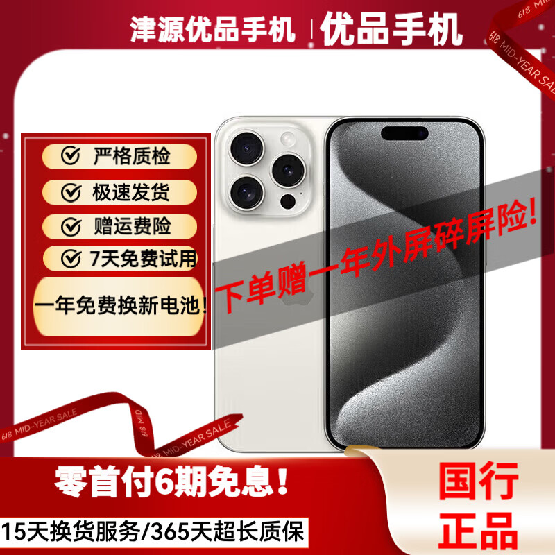 AppleiPhone15Pro 苹果15pro max苹果国行5G二手手机 三方屏幕 苹果15Pro 白色钛金属 95新 【电池效率100+极速发货】256G