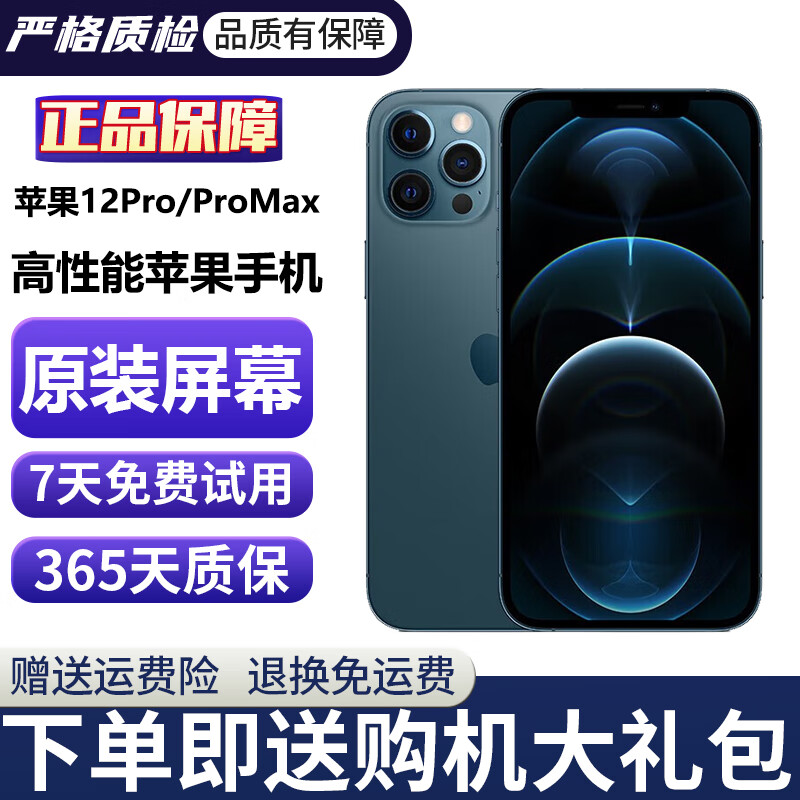 苹果 iPhone 12ProMax 苹果12pro 苹果12promax 二手苹果手机 国行 5G 二手手机 12ProMax 海蓝色 99新 512G【原装屏幕+换100%电池+礼包】