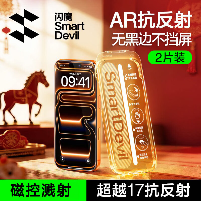 闪魔泰坦AR膜【磁控溅射/升级抗反光】适用iPhone17promax钢化膜苹果17pro/16promax手机膜增透强防爆 17 Pro Max【升级防摔+AR增透】2片装 磁控溅射AR抗反光+泰坦防爆玻璃+无黑边不挡屏