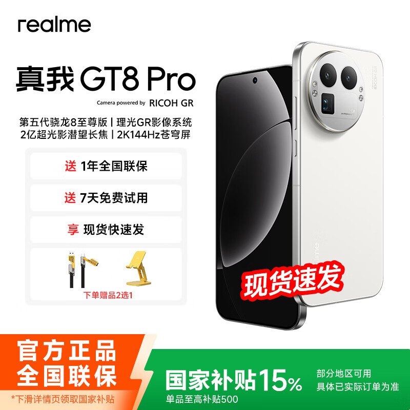 真我(realme) OPPO真我 GT8 Pro 国补 理光GR影像系统 第五代骁龙8至尊版 智能AI游戏拍照5G电竞手机 怀特 16GB+512GB