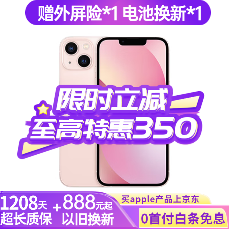 Apple【白条免息0首付】Apple iPhone13 苹果13 国行5G双卡全网通 苹果二手手机 粉色【店长推荐】 【99新】256G【6期免息+三年店保+0首付】
