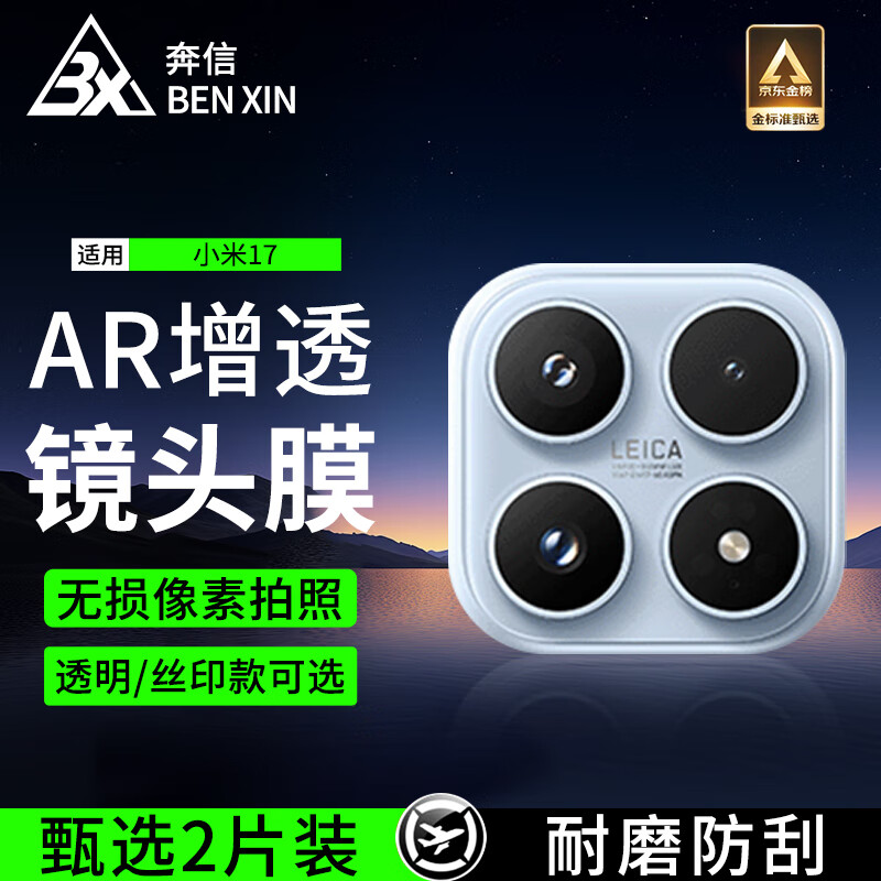 奔信【2片装】适用小米手机镜头膜后置摄像头保护AR增透高清耐磨防刮镜头钢化膜 小米17 全透明高清丨2片装
