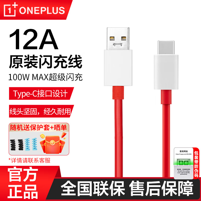 一加数据线typec原装正品OnePlus 100w/150w超级快充线一加13/12/11/10手机充电器线ACE2/3v原厂数据线 【12A】一加原装Type-C 数据线