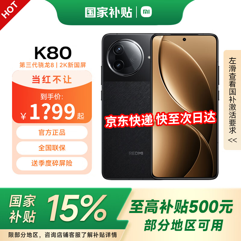 小米红米k80 国家补贴 REDMI 新品5G小米红米手机 2K新国屏 6550mAh大电池 澎湃OS 智能手机 玄夜黑 12GB+512GB 【官方标配 京仓速发】