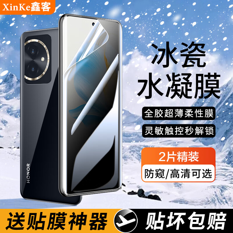 鑫客适用荣耀手机防窥膜水凝软膜曲面屏全覆盖非钢化全胶保护膜 荣耀100 【防窥冰瓷水凝膜】2片装+贴膜神器