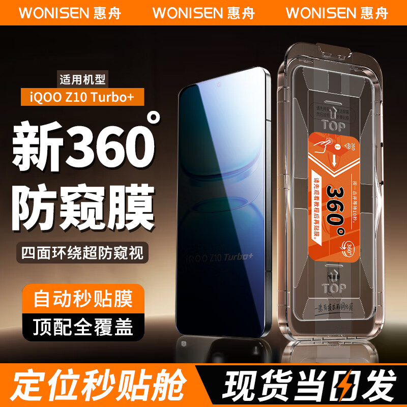 惠舟【新防窥360度】iQOO手机防窥膜无尘仓秒贴钢化膜上下左右防偷看全屏保护膜 iQOO Z10Turbo+ 360°防窥膜丨定位秒贴款2片装