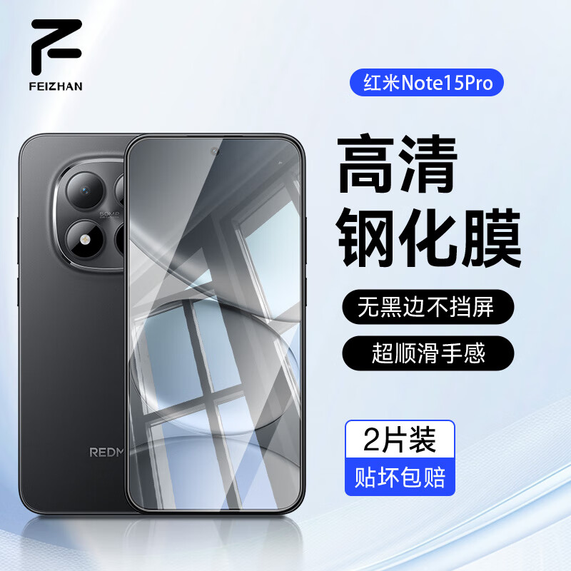 斐瞻适用小米REDMI红米note15pro钢化膜高清护眼防窥手机膜防摔防爆防指纹防蓝光全屏保护贴膜电竞膜 【高清膜-电镀双倍抗指纹】2片装